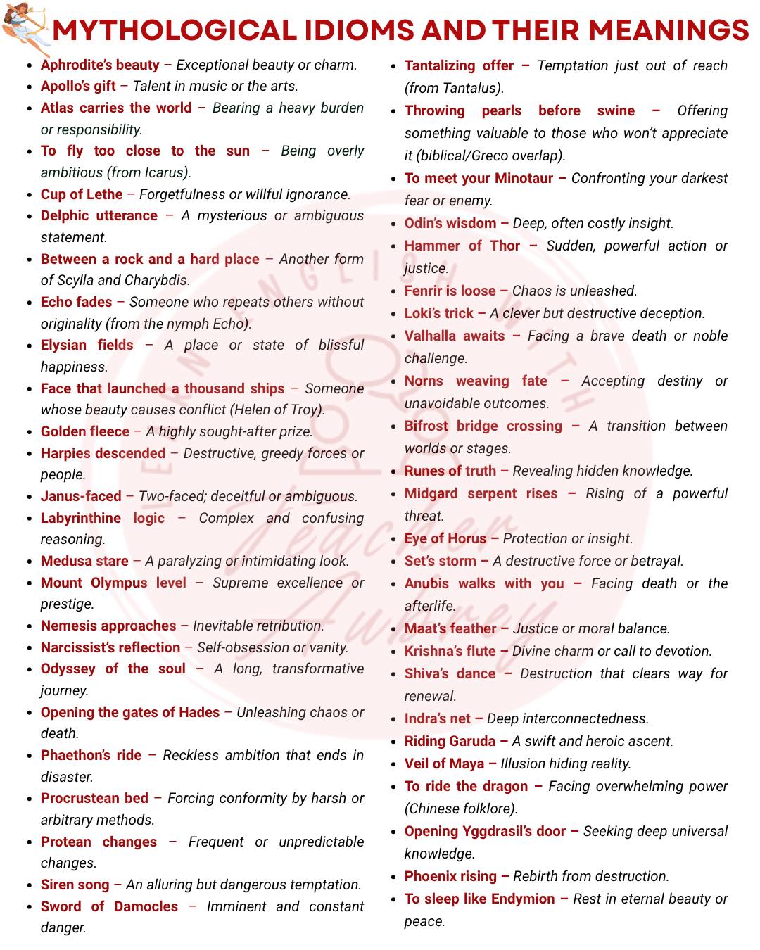Here are words and phrases in English that are derived from Greek or Roman mythology, each with a brief explanation of the mythological connection. These words and expressions show the enduring influence of ancient mythology on modern English, across various fields from literature to science to everyday speech.