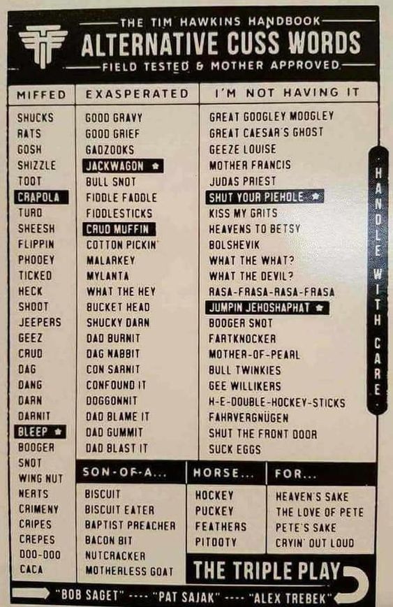 - Alternative cuss words (field-tested and mother approved)